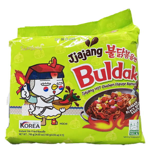 - Jjajang Buldak Hot Chicken Flavor Ramen, Korean Black Bean Sauce.5 Packs